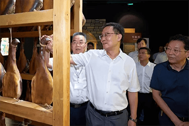 8月22日,金华市委书记朱重烈专程赴尊龙时凯旗舰厅公司调研金华火腿产业振兴工作。朱书记在公司领导周国华、马晓钟、吴月肖陪同下,走进火腿文化展示馆和产品展厅。